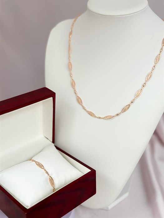 Цепочка и браслет из дубайского золота с кружевными звеньями