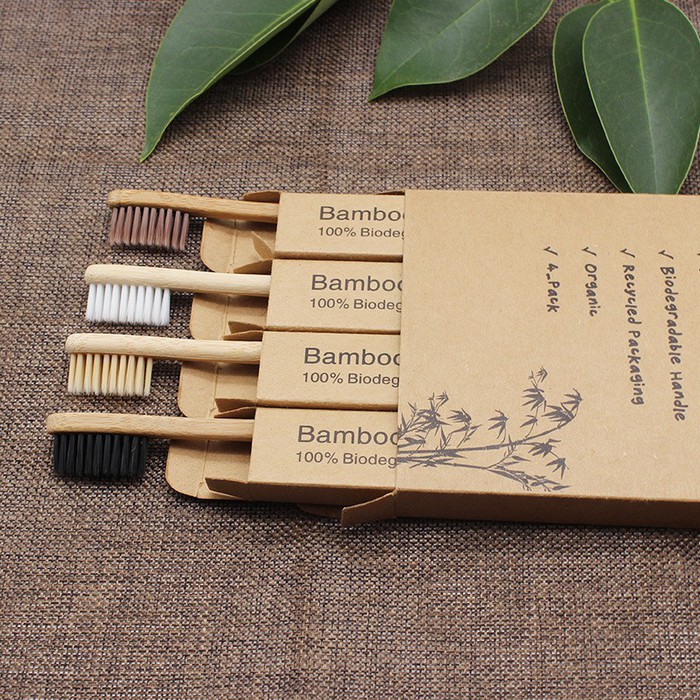 Набор деревянных бамбуковых эко-щеток 4 шт. в индивидуальных коробочках
