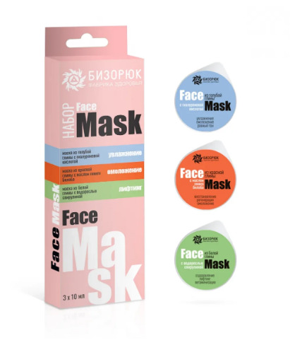 Набор масок «Бизорюк» – это уникальный комплекс для полноценного домашнего ухода за кожей лица, направленный на глубокое увлажнение, омоложение тканей и естественное обновление.