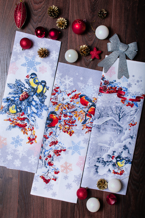 Набор из трех полотенец из рогожки размером 60*48 см. Полотенца с новогодним рисунком украсят ваш праздник и станут приятным подарком для близких.