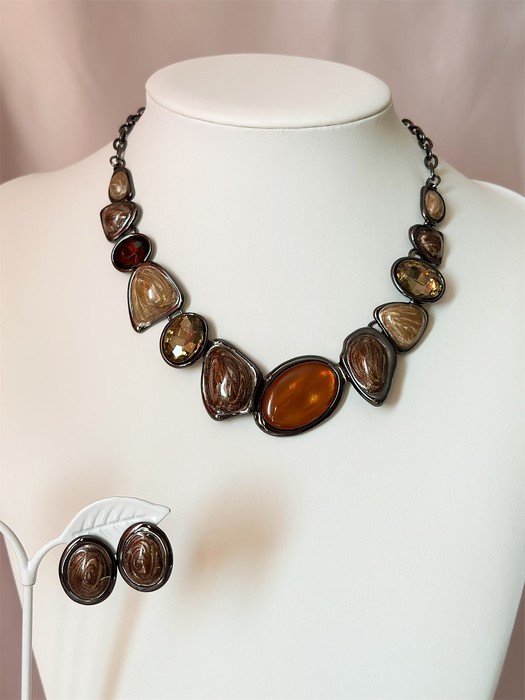 Шикарный набор из дубайского темного серебра. В набор входят колье и серьги.