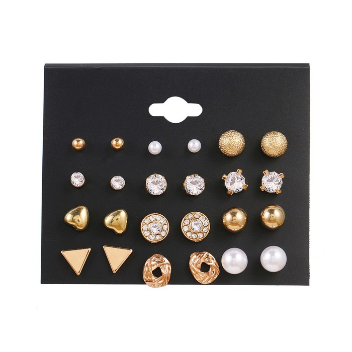 Совместные покупки Сургут Косметика и парфюмерия Прочий макияж — Набор сережек-гвоздиков 12 пар. Цвет: Золото