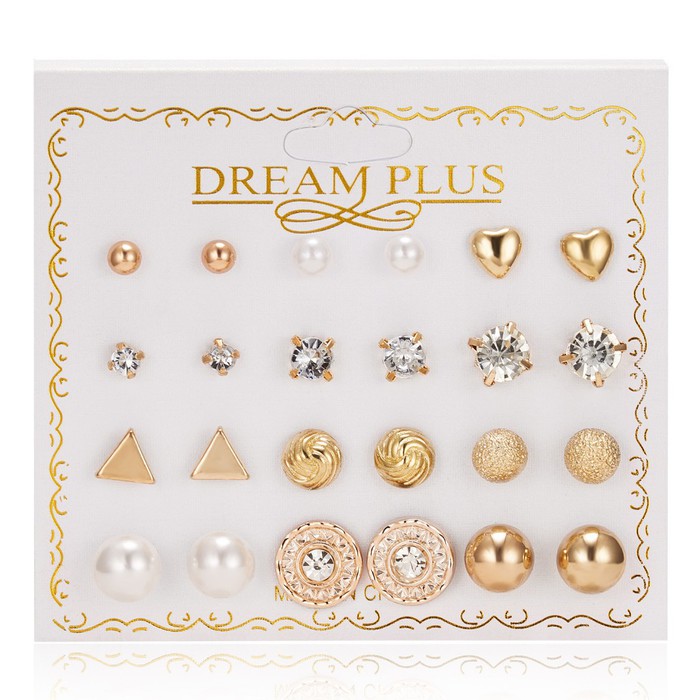 Совместные покупки Сургут Косметика и парфюмерия Прочий макияж — Набор сережек-гвоздиков 12 пар. Цвет: Золото