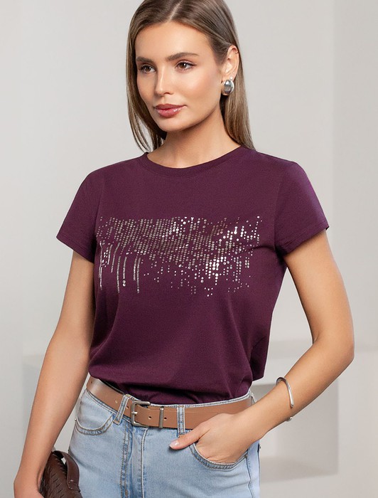 Совместные покупки Сургут Женская одежда Футболки — Нарядная футболка с блестящим принтом