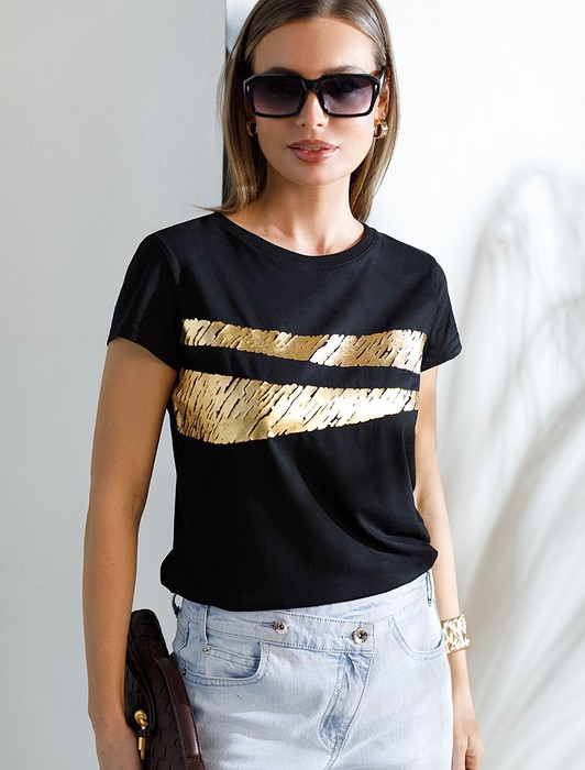 Совместные покупки Сургут Женская одежда Футболки — Нарядная футболка с золотистым принтом