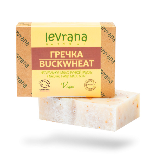 Хлопья гречихи, входящие в состав мыла, повышают упругость и оказывают нежное скрабирующее действие, тем самым удаляя ороговевшие клетки кожи.