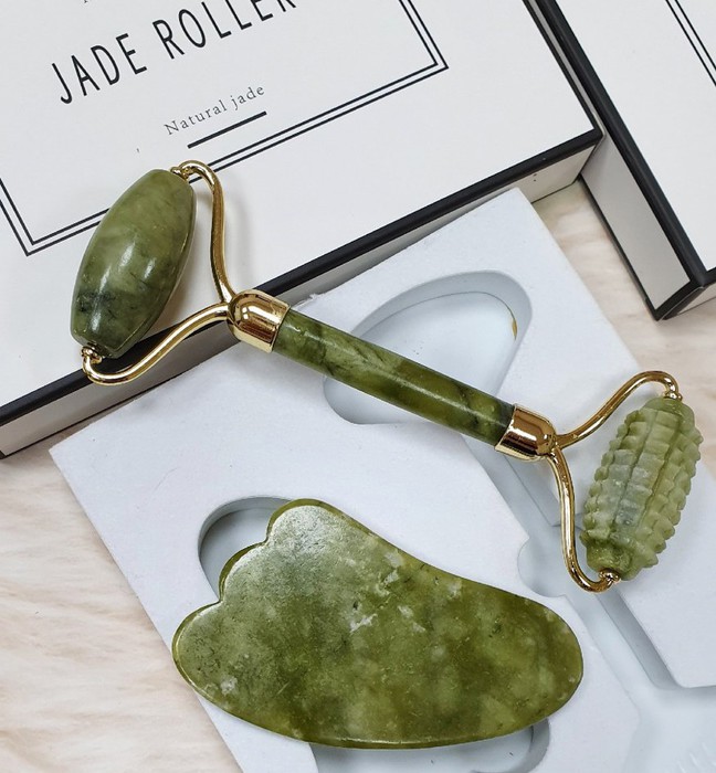 Совместные покупки Сургут Косметика и парфюмерия Прочий макияж — Нефритовый набор для массажа Гуаша (Ролик с КОЛЮЧКАМИ + скребок)
