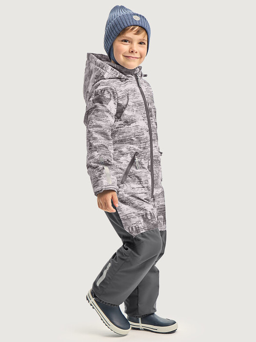 Комбинезон САВАННА с системой роста на один размер (длина рукавов и брючин увеличивается на 4-5см).Комбинезон из мембранной ткани 5000/5000 с водо- грязеотталкивающей технологией TEFLON.Мембранная ткань - это непродуваемый и водонепроницаемый материал, который надежно защитит от ветра и влаги. Благодаря дышащим свойствам мембраны ребенку будет комфортно в любую погоду, и он не вспотеет. Ткань обработана снаружи экологически чистым протектором TEFLON для защиты от воды и грязи. Мембрана в сочетании с утеплителем нового поколения FIBERlite сохранит тепло во время прогулок, позволит телу дышать. Флисовая подкладка отводит влагу и имеет хорошие теплоизоляционные свойства.  Функционал: - центральная застежка и карманы на молнии, - ветрозащитная планка, - капюшон с кулисой для регулировки объема, - резинка на спинке для создания силуэта, - внутренние бретели для возможности снять верхнюю часть изделия в помещении. Мы все продумали до мелочей, поэтому модель дополнительно оснащена:- трикотажными манжетами, - флисовой подкладкой до талии, - силиконовыми штрипками, - светоотражающими элементами для безопасности ребенка в темное время суток. Область колен и шов сидения проклеены, низ брюк на резинке.В комбинезоне предусмотрена СИСТЕМА РОСТА. Удлинить рукава и штанины можно, удалив строчку на подкладке и комбинезон подрастет вместе с ребенком. Комфортная температура эксплуатации от -5°С до +10°С. Рекомендуем приобрести комплектом аксессуары, обувь и другие вещи из капсулы в карточке товара, которые отлично сочетаются с изделиями коллекции.