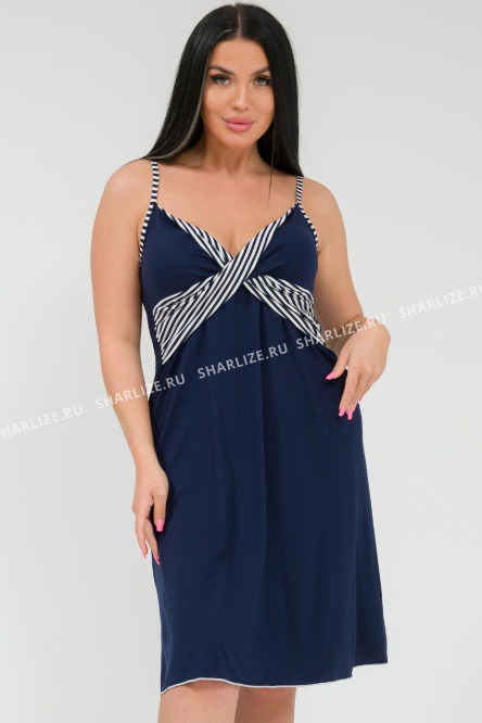 Нарядный сарафан темно-синего цвета с контрастной вставкой в виде банта выгодно подчеркивает грудь. Выполнен он из легкой, струящейся, приятной на ощупь вискозы с добавлением лайкры. Изделие полуприлегающего силуэта, с длиной немного выше колен станет идеальной базой на лето, обеспечивает свободную посадку на бедрах.