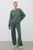 Сорочка женская из гладкокрашенного трикотажного полотна «кулирка», слегка расширенная книзу, без рукавов, с горловиной V-образной формы, окантованной основным материалом. Проймы и горловина обработаны декоративной строчкой «кроше».