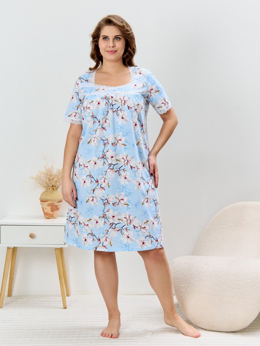 Совместные покупки Сургут Женская одежда Пижамы, халаты — Ночная сорочка Узор-1 НС-634 ГОЛУБОЙ