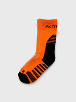Новогодние трикотажные носки обычной длины с формованной пяткой. Украшены рисунком с Дедом Морозом. Эластичная резинка по верхнему краю.