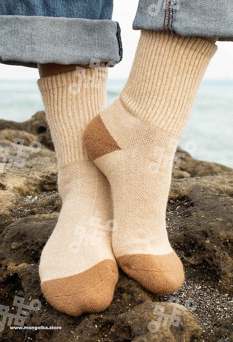 Носки из шерсти монгольской овцы износостойкие и будут радовать долгое время, связаны в технологии двойной вязки, а на подошве толщина материала увеличена.