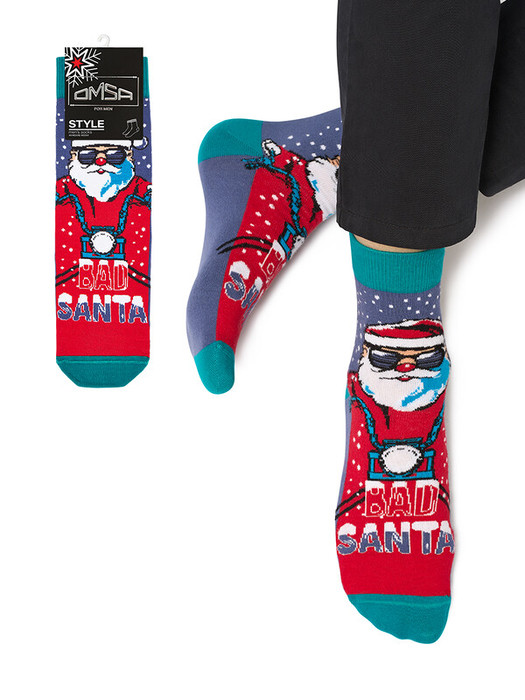 Мужские носки с красочным новогодним рисунком. Изготовлены из высококачественного мягкого хлопка, который превосходно пропускает воздух, приятно ощущается на теле и походит для чувствительной кожи.