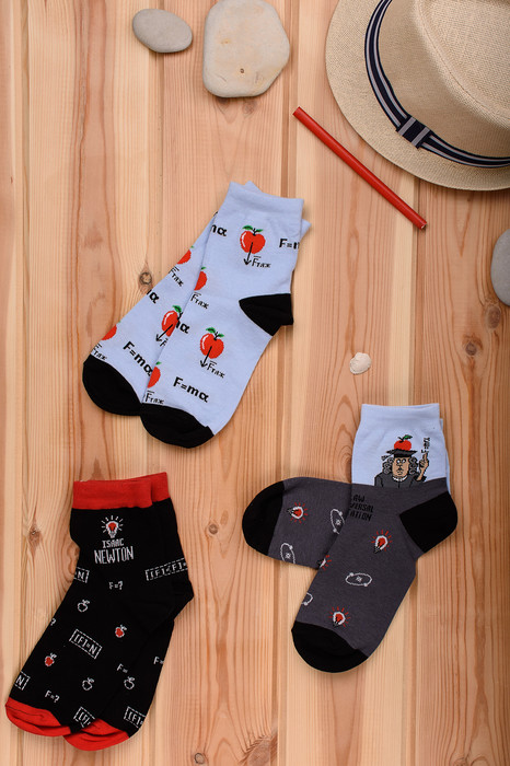 Оригинальный набор стилизованных мужских носков с изображением Ньютона. В упаковке 3 пары - по 1 паре каждого вида