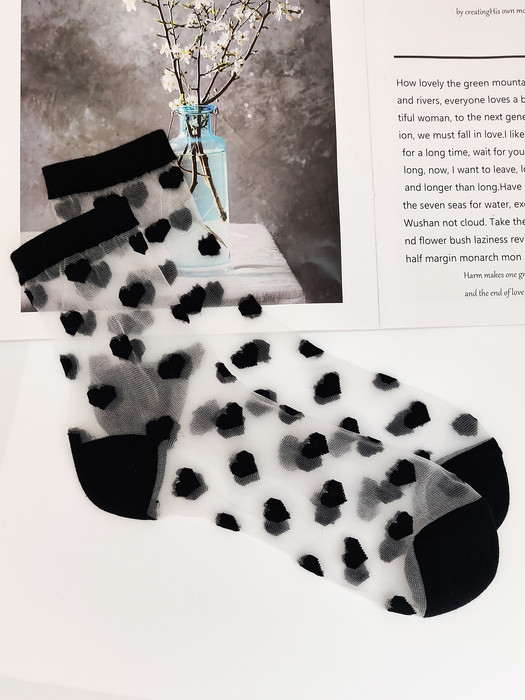 В серии "Dot" мы собрали прозрачные лёгкие носки с разноцветными точками и сердечками
