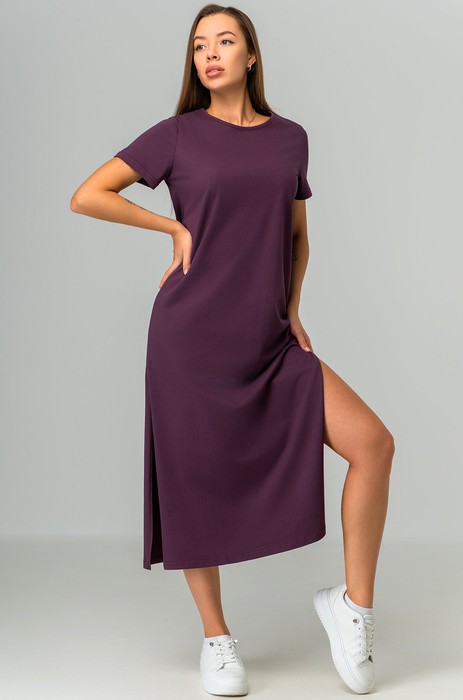Однотонное пурпурное платье – универсальная база на каждый день. Благодаря длине миди и удобным разрезам летнее платье дарит свободу движений. Сливовое платье станет стильным акцентом. Трикотажное платье подходит для прогулок летом.