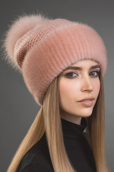 Совместные покупки Сургут Женские аксессуары Шапки — Оливия норка трикотаж кашмировая роза