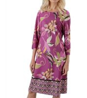 Летнее платье Aniston CASUAL для женщин с цветочным и листовым принтом, мини-платье с длинными рукавами, артикул 75319669, фиолетово-зелено-бежевый.
