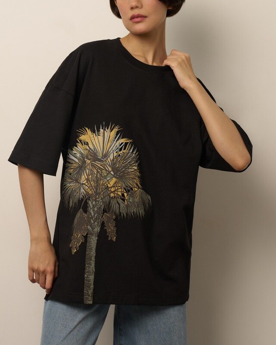 Футболка свободного силуэта. Горловина из рибаны.