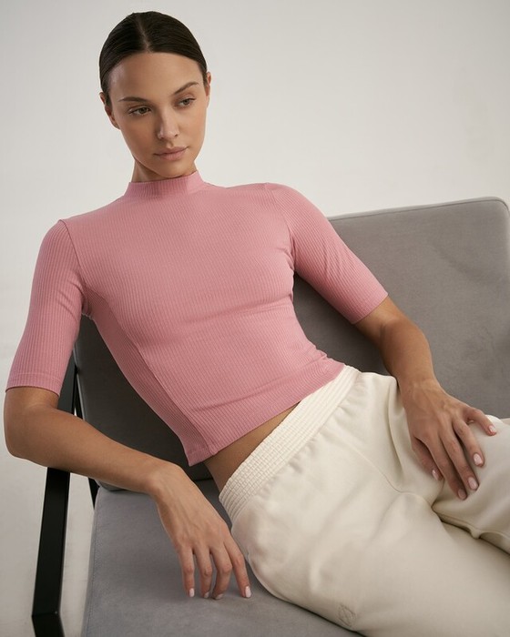 Укороченная футболка, облегающего силуэта. Притачная стойка.