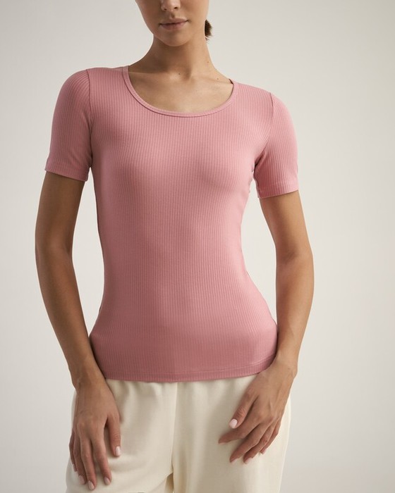 Укороченная футболка, облегающего силуэта. Втачной рукав. Горловина окантована.