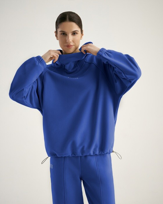 Худи женский. Двойной капюшон со вставкой. Рукав реглан, по низу рукава кулиска с резинкой внутри. По низу худи резиновый шнур с фиксатором.