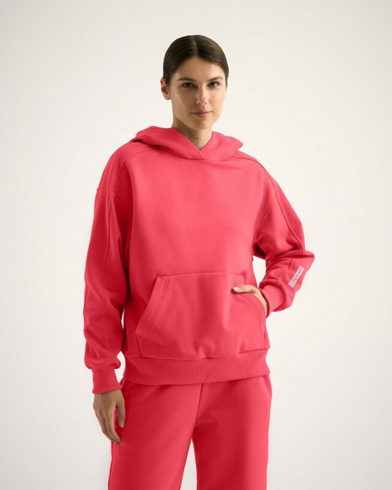 Худи свободного кроя с капюшоном, спущенное плечо, карман кенгуру.