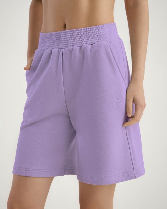 Удлиненные шорты. Пояс из основной ткани, отстроченный, боковые карманы.