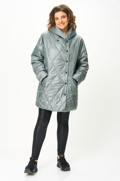 Полочка с центральной застежкой на кнопки. На полочке выполнены карманы с листочкой. Спинка цельная. Полупальто с капюшоном. Рукав одношовный, втачной, по низу рукав с отложной манжетой. Полупальто на подкладке.