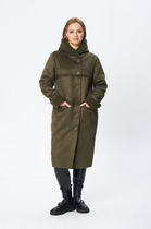 Пальто двубортное на пуговицах из строченой ткани, полуприталенного силуэта. Оригинальности изделию придают фактурные строчки. В комплект входит пояс с фирменной пряжкой. Удобные карманы на пуговицах. Утеплитель холкон (см.описание), плотность 100, длина рукава 64 см.