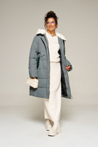 Пальто двубортное на пуговицах из строченой ткани, полуприталенного силуэта. Оригинальности изделию придают фактурные строчки. В комплект входит пояс с фирменной пряжкой. Удобные карманы на пуговицах. Утеплитель холкон (см.описание), плотность 100, длина рукава 64 см.