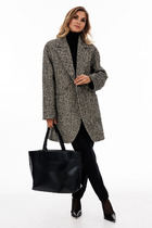 Элегантное, деловое, молодежное драповое пальто полуприлегающего силуэта. Прекрасно держит форму и придает фигуре четкий силуэт. Отделка из искусственной лакированной кожи придает пальто выразительность, индивидуальность и яркость. Центральная застежка на две кнопки сверху и потайные пуговицы. Длина изделия по спинке 86 см, длина рукава 63 см. Состав драпа: 50% шерсть, 30% полиэстер, 20% кашемир.