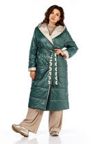В наступающем сезоне лидирующие позиции занимает стеганое пальто. Отличительной особенностью стеганых моделей пальто является простроченный материал в виде небольших квадратов или ромбов. Мы предлагаем пальто легкого прилегающего силуэта с поясом из мерцающих тканей. Центральная застежка на потайные кнопки, воротник-стойка. Модель дополнена элегантной брошью. Утеплитель синтепух-синтетический пух. Температурный режим до-5-10.