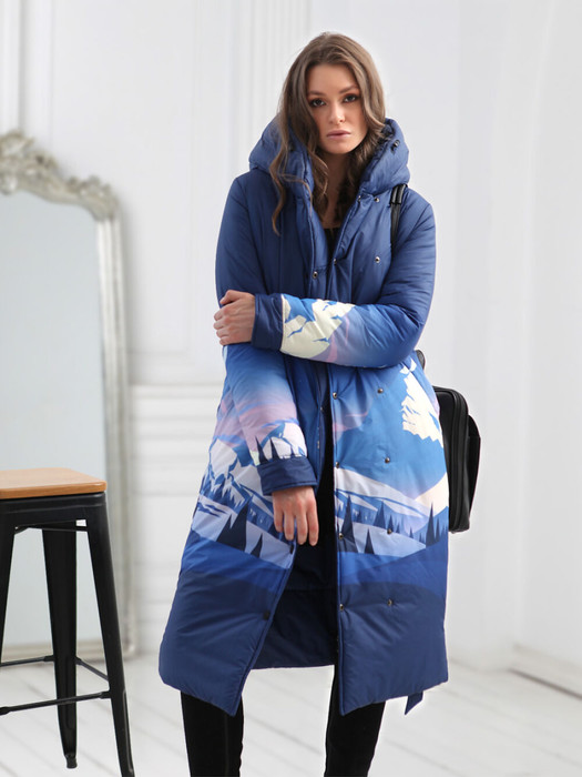 Стильное двухстороннее пальто на кнопках прямого силуэта, с капюшоном и ярким акцентным принтом украсит гардероб девушек и женщин разных возрастных категорий.  Прямой силуэт пальто можно скорректировать с помощью съемного завязывающегося пояса, акцентируя линию талии и создавая тем самым большее прилегание. Длина втачного рукава регулируется отворотом. На обеих сторонах пальто есть функциональные карманы. Плащевая ткань, из которой выполнено пальто, имеет водоотталкивающую пропитку, выдерживающую небольшой  дождь или снег. Хорошо зарекомендовавший себя  современный утеплитель с содержанием овечьей шерсти "Альполюкс", плотностью 300 г/м, защитит от холода и ветра. Сочетание в этом модном зимнем пуховике сдержанности и яркости поможет в создании различных образов!  Выбирайте понравившееся цвет, меняйте аксессуары и обувь, и это пальто станет любимой вещью в Вашем гардеробе! Пусть зима  будет не только комфортной, но и стильной!