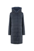 Пальто женское плащевое утепленное, стеганное на утеплителе ISOSOFT 250гр. прямого силуэта, на подкладке, с капюшоном, длиной ниже колена. Застежка на молнию. Перед с наклонными карманами, застегивающиеся на молнию. По борту и карману отделочный кант. Рукав втачной, двухшовный.