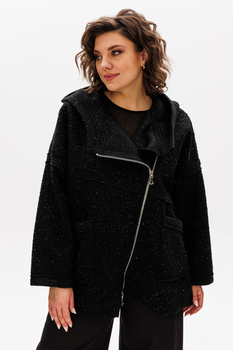 Женское полупальто для повседневной носки выполнено из пальтовой ткани без подкладки. Полупальто длиной до бедер свободного кроя с капюшоном. Плечо спущенное, рукав длинный втачной, один рукав украшен нашивкой. Перед изделия с асимметричной косой застежкой на разъемную тесьму-молнию. Спинка прямая цельная. Полупальто украшено рельефными швами срезами наружу. По переду накладные карманы. Низ изделия разноуровневый с необработанным краем. Полупальто смело сочетается с любым низом (юбка, брюки, джинсы) и обувью. Длина по спинке 75 см, длина рукава от горловины 74 см. Изделие подойдет на рост 170 см.