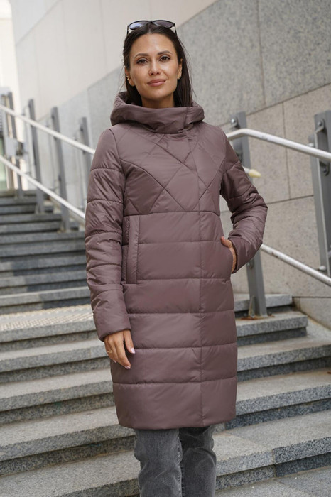 Стильное, комфортное полупальто полуприлегающего силуэта с оригинальной стежкой ромбами по кокеткам переда и спинки. Рукав втачной, уютный капюшон с высокой стойкой. Карманы листочки. Модель сочетает в себе элегантность и простоту. Пальто отлично смотрится практически на любой фигуре, хорошо впишется в Ваш гардероб благодаря своей универсальности.