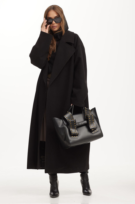 Пальто объемной формы из плотной пальтовой ткани. Длина макси. Воротник пиджачного типа. Пальто на запах, фиксируется завязывающимся поясом. На переде прорезные карманы. Рукав прямой свободный. Пальто на подкладке. Размер one size (44-52).