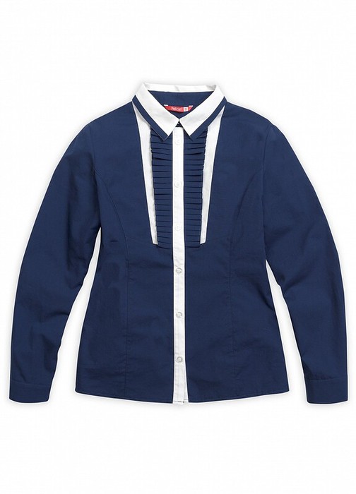 Блузка для девочек. Классический полуприлегающий силуэт с рельефами по переду и спинке. За счёт сочетания контрастных цветов тканей, а также мелкой складки с области груди, модель смотрится оригинально и ярко, при этом сохраняет строгость и гармоничность.  Коллекция - школа.