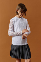 Актуальный минималистичный дизайн рубашки для девчонок, знающих толк в моде. Такая классика придется по вкусу даже неформалкам, ведь воздушное кружевное жабо под воротником легко отстегивается и остаются только чистые лаконичные формы. Состав оценят мамы: изделие не требует особого ухода, почти не мнется и легко стирается. А чуть присборенный рукав не стесняет движений маленькой непоседы.