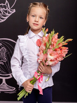Школьная блузка прямого силуэта для девочки. Преобладающий в составе ткани хлопок делает эту модель мягкой, дышащей и комфортной для ребёнка. Благодаря полиэстеру изделие сохраняет форму и превосходный внешний вид. На спинке кокетка с защипом - свобода движения, комфорт в течение дня.  По переду под кокеткой имитация кармана в виде декоративного клапана – актуально и стильно. Воротник украшают декоративные пуговицы — изюминка модели. Рукав с отворотом - оригинально. Практичная и универсальная модель благодаря лаконичному дизайну великолепно сочетается с различными брюками и юбками. Отличный вариант детской блузки для школы.