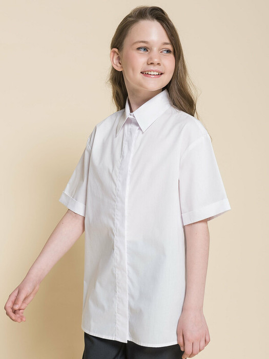 Школьная блузка прямого силуэта для девочки. Преобладающий в составе ткани хлопок делает эту модель мягкой, воздухопроницаемой и комфортной для ребёнка. Полиэстер помогает не терять форму и превосходный внешний вид. На спинке кокетка с защипом — свобода движения, комфорт в течение всего дня. Классическая центральная застёжка на пуговицы скрыта планкой — это придаёт блузке элегантной строгости. Рукав с отворотом - оригинально. Изделие лаконичного дизайна легко сочетать с различными брюками, юбками и джинсами. Красивая и практичная блузка — подходит как для повседневной носки в школу, так и для более торжественных случаев.
