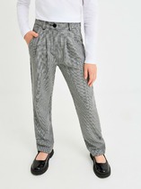 петельками, которая позволяет регулировать объем по талии) — удобно и практично . Шлевки для ремня на талии. В составе ткани преобладает вискоза — брюки на девочку мягкие, приятные на ощупь, хорошо пропускают воздух, ребёнку не жарко. Полиэстер и эластан обеспечивают прочность и износостойкость — изделие прослужит не один сезон. Брюки детские универсальны, отлично сочетаются с различными рубашками, жилетами, блузками и джемперами. Идеальны для повседневной носки в школу. Помните о правильном уходе за изделием: рекомендуется стирать при температуре не выше 30 °C, без предварительного замачивания, с изнанки. Это поможет сохранить качество и цвет брюк на длительное время.