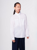Изюминка модели — съёмный пин в виде весёлого цветочка с глазками и улыбкой. Он добавляет игривое настроение и делает образ менее формальным. Такой аксессуар понравится детям, ведь его можно снять или прикрепить по настроению. Это делает блузку не только школьной, но и подходящей для прогулок, походов в кружки или встреч с друзьями.