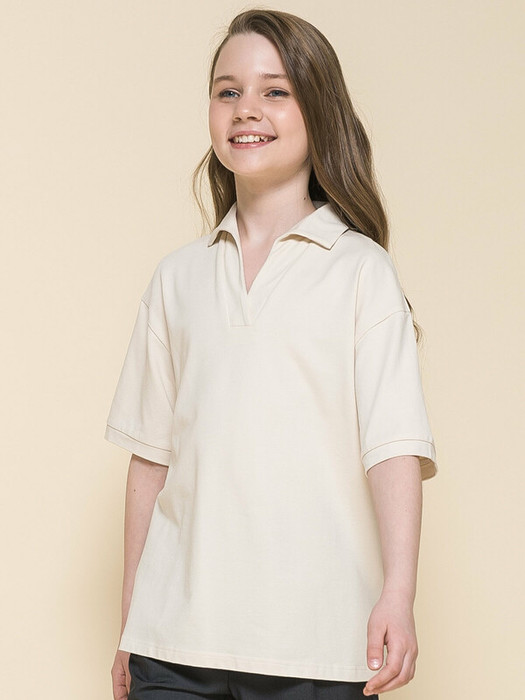 Футболка свободного силуэта со спущенным плечом для девочки. В составе ткани преобладает хлопок — изделие мягкое, дышащее и приятное на ощупь. Эластан помогает сохранять форму даже после частых стирок. Мягкая V-образная горловина дополнена отложным воротником без застёжки – удобно надевать и снимать. Благодаря свободному силуэту эта модель подходит девочкам с разными типами фигуры. Футболка не станет малой в течение долгого времени, даже если ребёнок заметно подрастёт. Изделие лаконичного дизайна легко сочетается как с брюками, так и с юбкой, сарафаном. Отличный выбор школьной одежды для девочек.