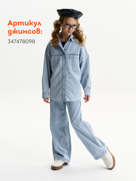 Джинсовая рубашка для девочки. Свободная рубашка прямого кроя с классическим отложным воротником и спущенным плечом подарит ребёнку комфорт и не будет стеснять его движений. Модель застёгивается на пуговицы по переду. По низу рукавов манжеты на пуговицах. Спереди слева удобный накладной карман для мелочей. Фигурная линия низа, кокетки по переду и спинке придают изысканности. Изделие лаконичного дизайна, без принта. Модель неприхотлива в уходе. В составе ткани 100% высококачественного хлопка — рубашка мягкая и воздухопроницаемая. Изделие выполнено в джинсовом синем цвете с актуальным эффектом мягкой варки garment wash. Рубашка легко сочетается с различными брюками, джинсами, легинсами. Размерная линейка: 3 (98); 4 (104); 5 (110); 6 (116); 7 (122); 8 (128); 9 (134); 10 (140); 11 (146). Идеальная рубашка на девочку дошкольного и младшего школьного возраста, а также девочку-подростка. Рубашка джинсовая подходит для круглогодичной носки: летом, осенью, зимой, весной и демисезон. Её можно носить в детский сад, на прогулки, отдых, а также дома. В прохладную погоду летом рубашку можно надеть на футболку или топ, а зимой она послужит средним слоем одежды. Модная рубашка — отличный подарок дочери, внучке или сестре на любой праздник или просто в качестве знака внимания и заботы. Выбирайте нужный размер по таблице размеров на фото. Цвет товара на экране вашего устройства может отличаться от цвета изделия вживую.