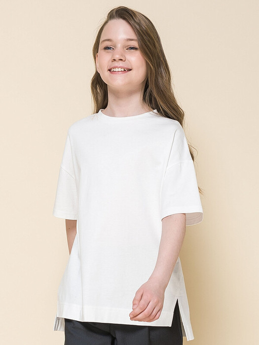 Детская футболка свободного силуэта со спущенным плечом для девочки. Перепад длин переда и спинки — один из актуальных модных трендов. По бокам разрезы — футболка школьная для девочек не будет сковывать движений ребёнка. Благодаря свободному силуэту футболка однотонная прослужит долго, её можно брать на вырост. Ребёнок растёт — футболка для девочек не становится малой. Изделие выполнено из 100% высококачественного хлопка плотностью 180 гр/м2 — ткань мягкая, приятная на ощупь и отлично пропускает воздух. Лаконичный дизайн позволяет сочетать футболку с любыми брюками и юбками, создавая разнообразные стильные образы. Отличный вариант одежды для школы и не только. Помните о правильном уходе за изделием: рекомендуется стирать при температуре не выше 30 °C, без предварительного замачивания, с изнанки. Это поможет сохранить качество и цвет футболки на длительное время.