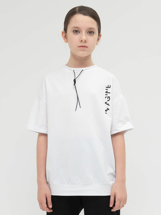 Прямой силуэт, спущенное плечо, свободный рукав не стесняют движения. А широкая горловина с эластичным шнуром и фиксатором легко отрегулирует объем. На переде минималистичный локальный принт Imagine (Воображай).