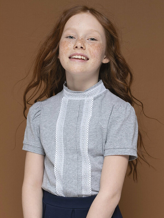 Кружево по бокам центральной складки спереди и по воротнику, а также лёгкая сборка рукава вносят немного романтики в классический стиль.